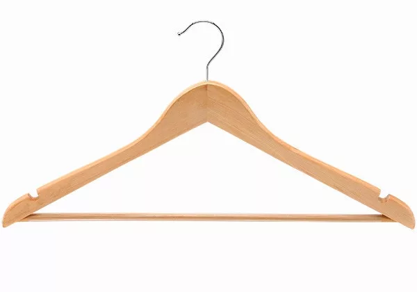 The curved wooden hanger is a timeless and practical solution for organizing your clothes. It is made of solid maple wood, which stands out on the market with its smooth surface and durability. The hanger features a non-slip bar that prevents pants or other clothing from slipping off. The hanger's design allows you to comfortably hang a variety of clothes, such as T-shirts, shirts, trousers, skirts and dresses. The upper lugs have two cutouts that make it easier to access taller coats, making them easier to store. In addition, the 360° rotatable chrome-plated hook allows the hanger to be easily mounted in any direction, which can be especially useful in tight spaces. The hanger's dimensions - 44.5 cm long, 23 cm high and 1.2 cm thick - make it ideal for adult clothing, including suits and coats. Thanks to its material, it is not only functional, but also an aesthetic addition to any wardrobe or closet. The hanger's accessories include a nickel finish, which not only increases durability but also enhances its appearance. The anti-slip feature ensures that clothes stay securely in place, so you don't have to worry about your favorite suits or coats slipping off the hanger. Overall, the curved wooden hanger is an excellent choice for anyone who values quality and practicality in storing their clothes.