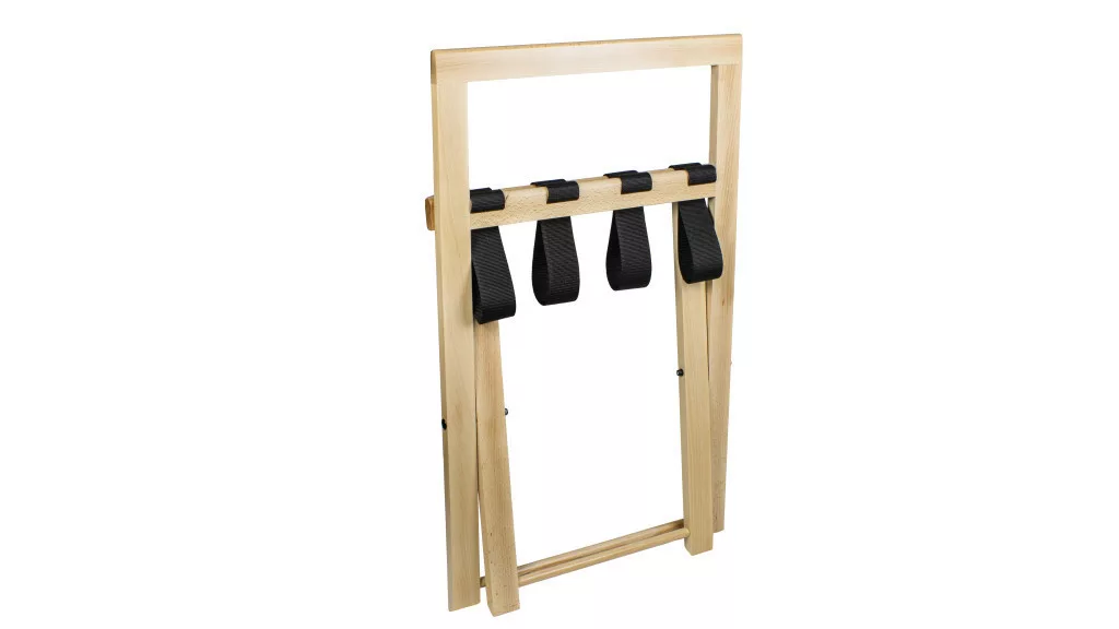 The GAMMA Hotel Luggage Rack with Backrest is an innovative solution that makes it easier for guests to unpack and pack their suitcases. With this product, we can avoid suitcases from falling onto the bed or armchair, thus minimizing dust and dirt that can get on bedding or furniture. The suitcase rack is made of high-quality solid bamboo, which is not only durable but also environmentally friendly. The product is available in different colors, so it can be easily adapted to the look of the rooms. The suitcase rack is extremely compact, only 5.5 cm narrow, so it can be easily stored when not in use. Its dimensions are optimal: width 57.5 cm, length 39 cm and height 46.5 cm. The product has four strong straps made of fabric, ensuring the stability of the suitcase. The manufacturer provides a 2-year warranty on the product, which reflects their commitment to quality. Furthermore, in the spirit of environmental awareness, the manufacturer plants a tree for every third product purchased, thus contributing to sustainable development. This luggage rack is an ideal choice for any hotel that cartes about both guest comfort and environmental protection.