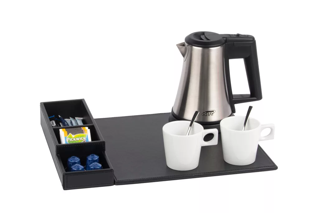 Snap tray with 0,5L kettle and 2 white cups