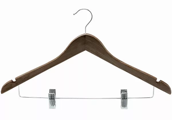 The UNFINISHED Trouser Clip Hanger is a practical and modern solution for storing clothes. It is made of high-quality, solid maple wood, which ensures durability and reliability. The hanger features two adjustable chrome clips that flexibly adapt to clothes of different sizes, making it an ideal choice for hanging skirts, blouses, trousers and dresses. The clips have a non-slip rubber coating that prevents clothes from slipping and does not leave marks on textiles. The notches in the upper part of the hanger help to securely fix clothes with straps, so they stay in place. Product dimensions: length 44.5 cm, height 27.5 cm, thickness 1.2 cm, color wenge, hook with ball end, accessories with nickel finish. Thanks to the anti-slip function, clothes can be stored safely, preventing wrinkles and damage. The UNFINISHED hanger is not only practical, but also an aesthetic addition to your wardrobe, helping you keep your clothes organized. The combination of modern design and functional solutions ensures that this hanger will be useful in every household.