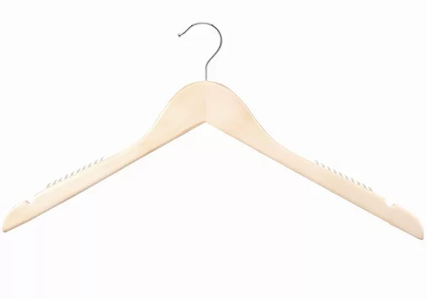 The UNFINISHED TOP FORM coat hanger is a classic coat hanger made of premium maple wood and is free of chemical varnishes, making it an environmentally friendly choice. The coat hanger is durable and suitable for storing a wide range of clothes, such as coats, blouses, sweaters, shirts, skirts and dresses. The product has a special design that ensures that the hung clothes keep their shape, thus preventing wrinkles and deformation. The shoulder pads help stabilize skirts and dresses with straps, so they always stay in place. The rotatable chrome-plated hook allows the hanger to be easily mounted in any direction, keeping your wardrobe or rail tidy and clear. The slim and lightweight design of the unisex wooden coat hangers makes them ideal for storing and displaying both women's and men's clothes. The color of the coat hanger is unfinished, which gives it a natural look, so it can easily fit into any interior. It is easy to use and, thanks to its durability, provides a reliable solution for organizing clothes in the long term.