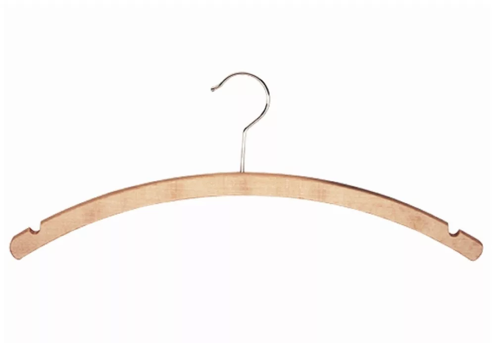 The UNFINISHED hanger CLASSIC STANDARD is a timeless, elegant solution for storing clothes. Made of lightweight maple wood, its smooth surface and natural look will fit into any interior. The hanger's many functions make it ideal for hanging a variety of garments, such as T-shirts, shirts, skirts and dresses. The notches on the upper shoulder ensure that cuffed garments, such as blouses and coats, stay firmly in place. The 360° rotatable chrome-plated hook allows the hanger to be easily positioned in any direction, providing a practical and versatile solution for organizing clothes. The hanger's dimensions are: length 42 cm, height 13 cm, thickness 1.2 cm, which is perfectly suited to adult size. The semi-finished color and nickel-finished accessories give the product a modern look. The hanger does not have an anti-slip function, but the natural feel of the wood material is enough to keep clothes securely in place. It is an ideal choice for everyday use, as well as for special occasions where the appearance of the clothes is of paramount importance. The hanger's durability and style make it a long-term solution for storing clothes, so it is worth investing in it. FAQ (5 questions/5 answers): 1) Question: What material is the hanger made of? Answer: The hanger is made of light maple wood. 2) Question: How long is the hanger? Answer: The hanger is 42 cm long. 3) Question: Does it have an anti-slip function? Answer: No, the hanger does not have an anti-slip function. 4) Question: What clothes can be hung on it? Answer: T-shirts, shirts, skirts and dresses can be hung on it. 5) Question: What is the design of the hook? Answer: The hook has a ball end and can be rotated 360°.