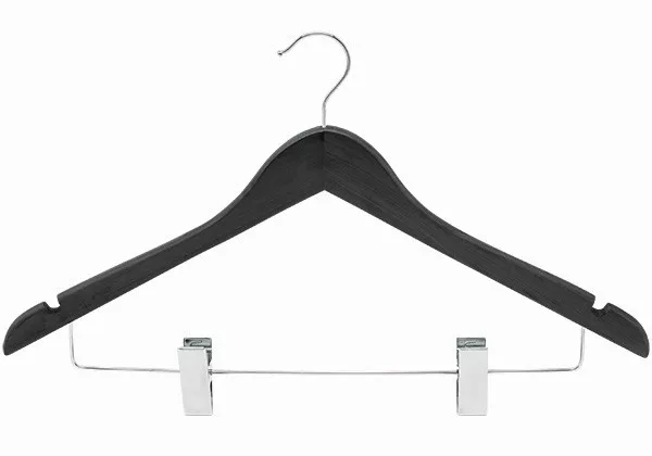 Wooden coat hanger with trouser clips