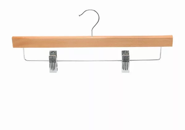 Wooden coat hanger with trouser clips
