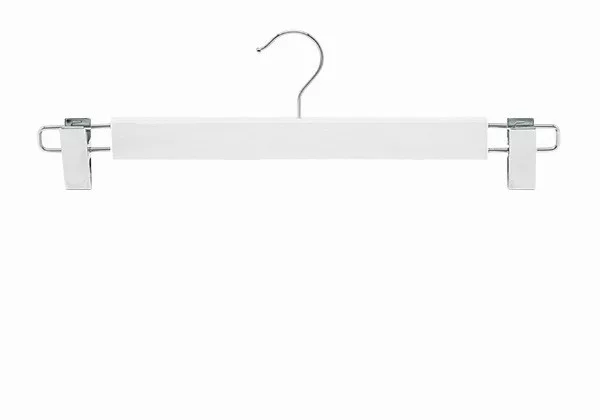 The wooden hanger with trouser clips offers a modern and practical solution for storing clothes. Made of solid maple wood, which is not only aesthetic but also durable. This hanger is specifically designed for skirts and trousers, as the two adjustable clips with non-slip rubber lining ensure that the clothes stay securely in place without leaving marks. The clips can move along the hanger, thus adapting to different clothing styles and sizes, allowing for versatile use. The chrome-plated rotating hook makes it easy to place the hanger in any direction, so lack of space should not be a problem during use. The hanger is 36 cm long, 12 cm high and 1.2 cm thick, which provides an ideal size for most items of clothing. The white color gives it an elegant look, while the matte nickel accessories design suggests a modern style. The hanger is made for adults and is specifically optimized for storing trousers and skirts. The anti-slip feature ensures that clothes stay in place, preventing them from slipping. This type of hanger is not only practical, but also aesthetically appealing, as the natural beauty of the wood highlights the elegance of the clothes stored. The wooden hanger with trouser clips is therefore an ideal choice for anyone who wants to preserve the condition and appearance of their clothes.