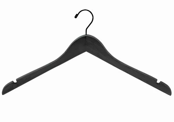 The wooden hanger TOP FORM is a classic and elegant solution for storing clothes. It is made of high-quality maple wood, which ensures a long service life. This hanger can easily hang different types of clothes, such as coats, blouses, sweaters, shirts, skirts and dresses. The specially designed shoulders on the hanger help to maintain the shape of the clothes, so they do not wrinkle. The shoulder pads also ensure that skirts and dresses with straps are kept in place. The rotatable chrome-plated hook allows the hanger to be easily mounted in any direction, making your wardrobe or rail tidy. The durable and slim unisex wooden hangers are ideal for storing or displaying women's and men's clothes, allowing you to always keep your clothes tidy and easily accessible. The hanger is available in black, which gives it an elegant look and fits into any interior. The size is for adults, length 44.5 cm, height 24.5 cm and thickness 1.2 cm. The hanger does not have an anti-slip function, but due to its design, the clothes stay securely in place. Use this hanger to keep your clothes neat and tidy!